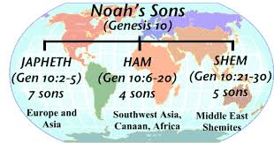 Looking at this 'Table of Nations', we see Shem being the beginning of the Hebrews, Chaldeans, Assyrians, Persians and Syrians-the line of David, Abraham and Jesus! We also see Japheth starting off the Greeks, Thracians and Scythians, who settled around Europe and Asia Minor. We lastly see Ham, the brother who disrespects his father and is cursed, who is the head of the nations of Canaanites, Egyptians, Philistines, Hittites and Amorites.-settlers of Egypt, Canaan and Africa.